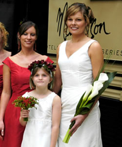 Sarah wanted a chic and modern wedding dress, to tie in with her and Richard's cosmopolitan wedding. Clean and elegant, with the minimum of detail were the keywords here.